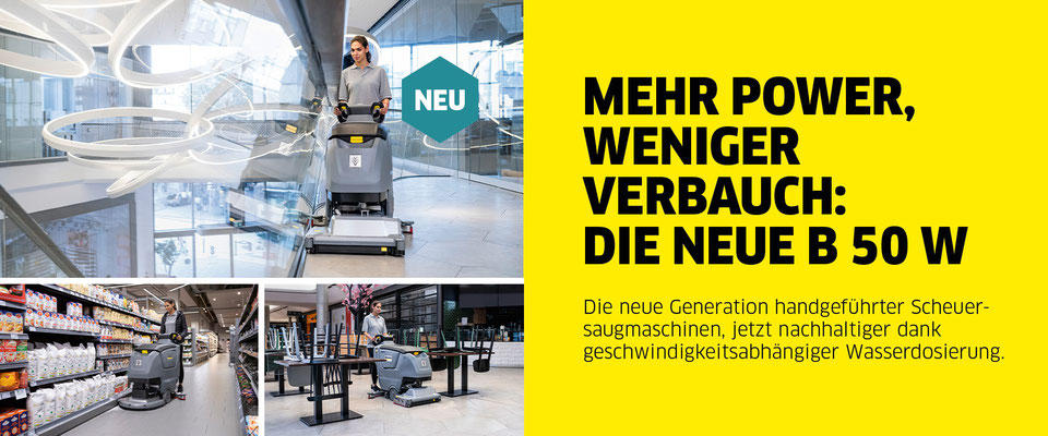 ..... ist der ideale Begleiter für die schnelle und effiziente Bodennassreinigung und bietet modernste Reinigungstechnik in bewährter Kärcher Qualität. Die Maschine besticht durch neue Features, erstklassige Leistung, schlankes Maschinendesign und intelligente Funktionen. Wahlweise ausgestattet mit AGM- oder Li.-Ion-Batterien, geschwindigkeitsabhängiger Wasserdosierung, Walzen- oder Scheibenbürstenkopf sorgt Sie für kompromisslos saubere Flächen auf bis zu 3600m² .